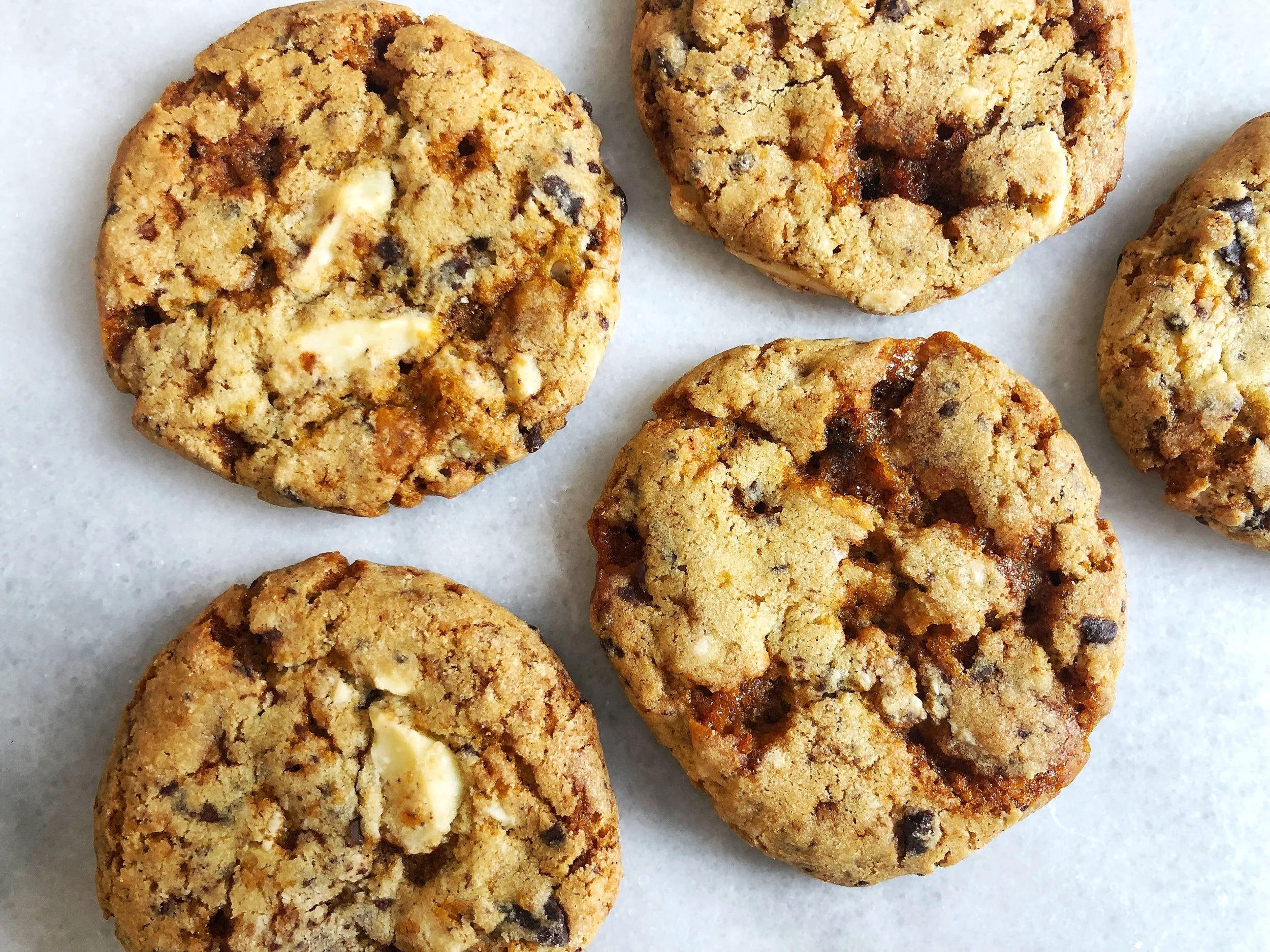 I’m definitely a doomsday preper styled holiday maker. I feel the urgency to eat everything in the house, clean profusely & spring clean in the days leading up to a trip - even though sometimes I am away for a night. On a whim to finish the honeycomb at home before flying out, I decided to chuck it in my chocolate chip cookie recipe from the cafe.