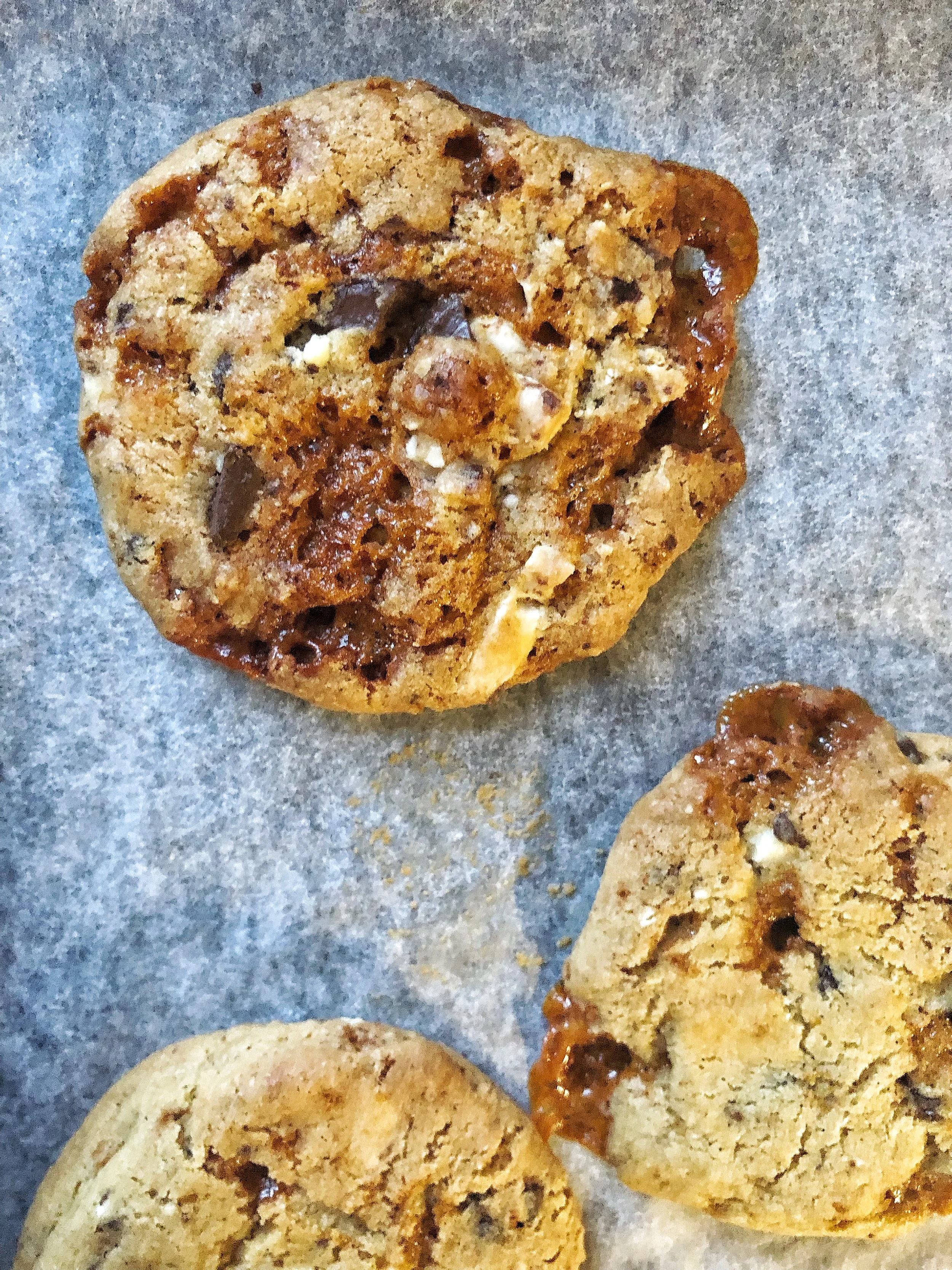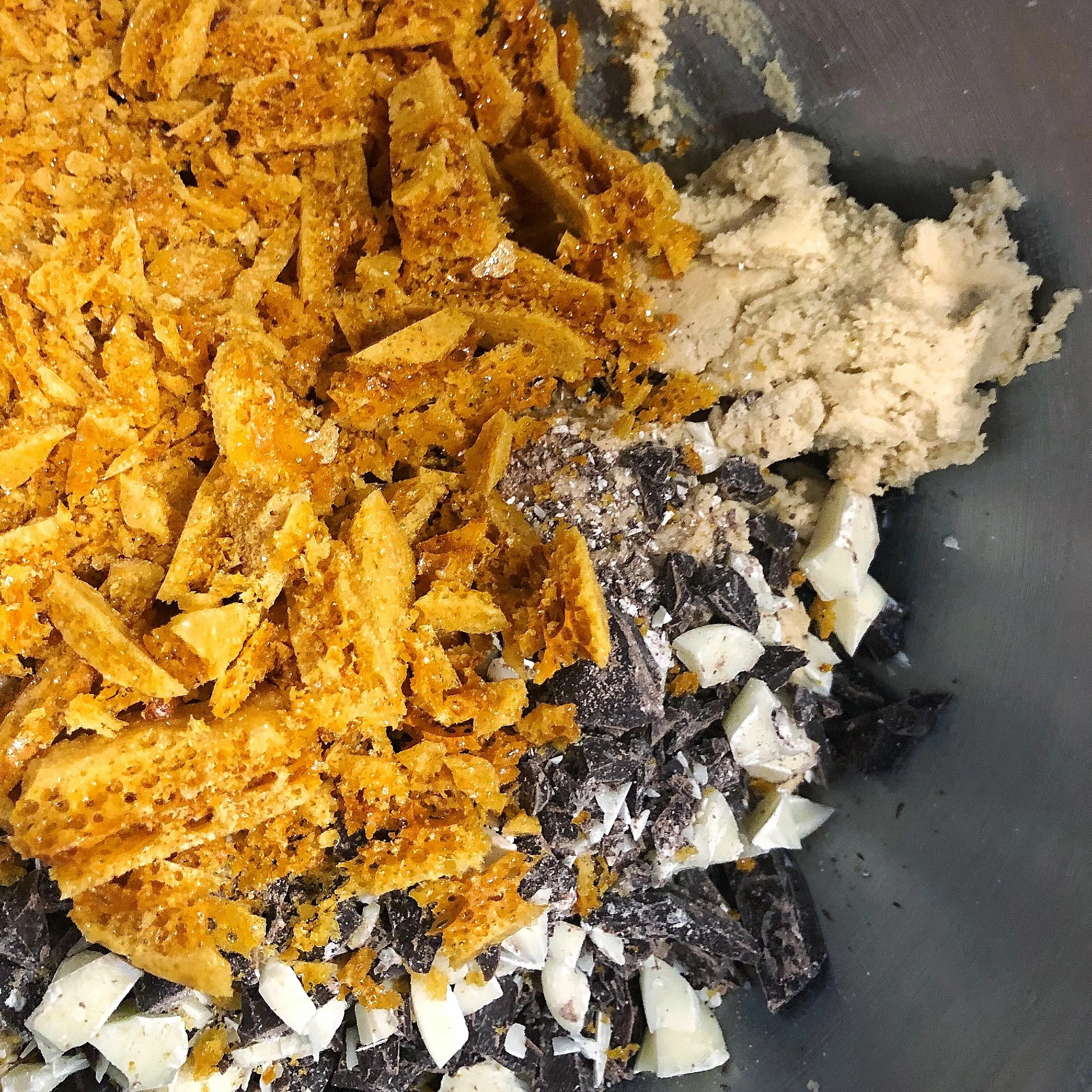 I’m definitely a doomsday preper styled holiday maker. I feel the urgency to eat everything in the house, clean profusely & spring clean in the days leading up to a trip - even though sometimes I am away for a night. On a whim to finish the honeycomb at home before going away, I decided to chuck it in my chocolate chip cookie recipe from the cafe.