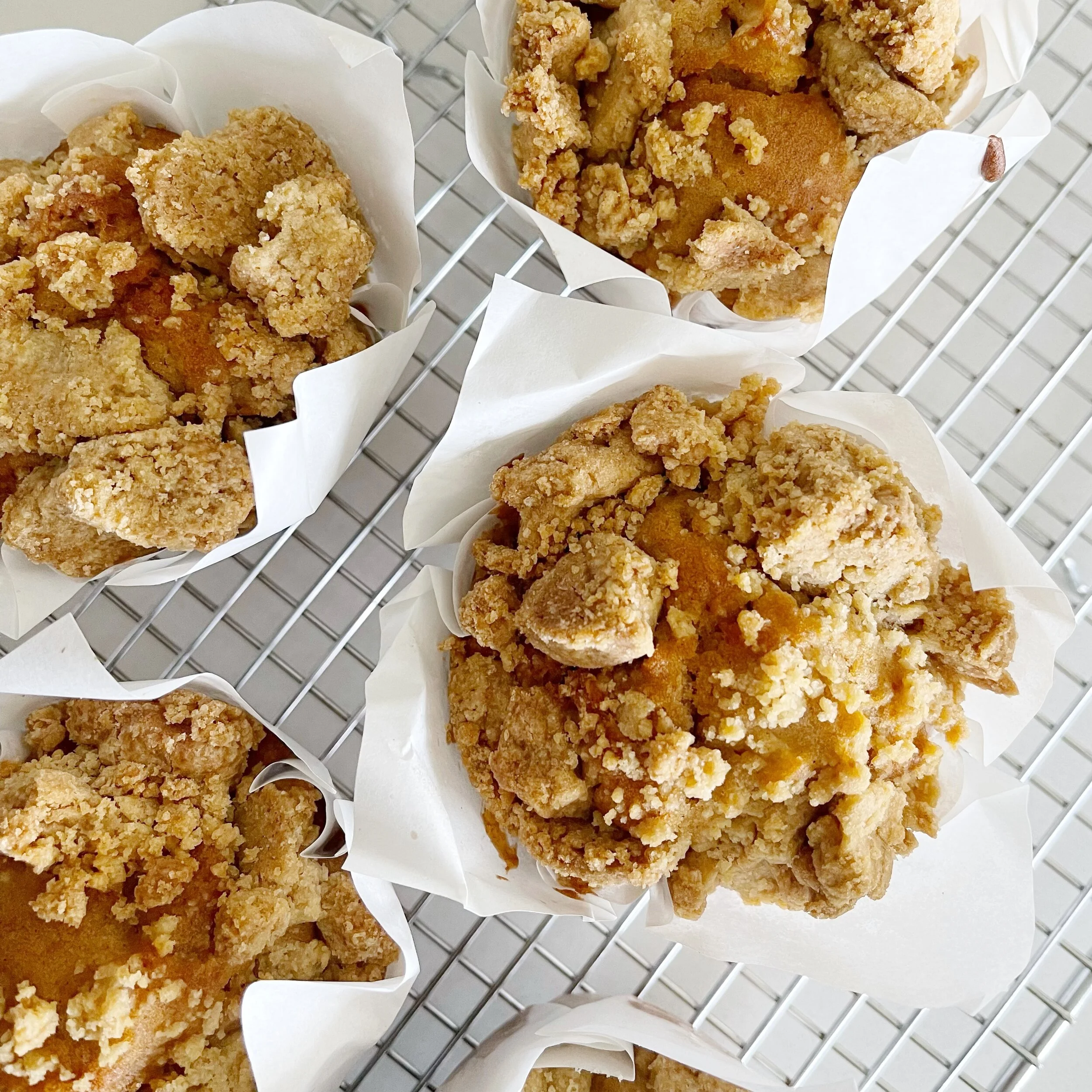 From Alice Nivens Cafe fame, this crumble is the bees kneez. I don’t know what makes it work, so I don’t dare change the process - you’re going to have to trust me when I say, par-bake it! Recently I tried this recipe with soft brown sugar for a more caramelised flavour and it took my apple crumble muffins to the next level!