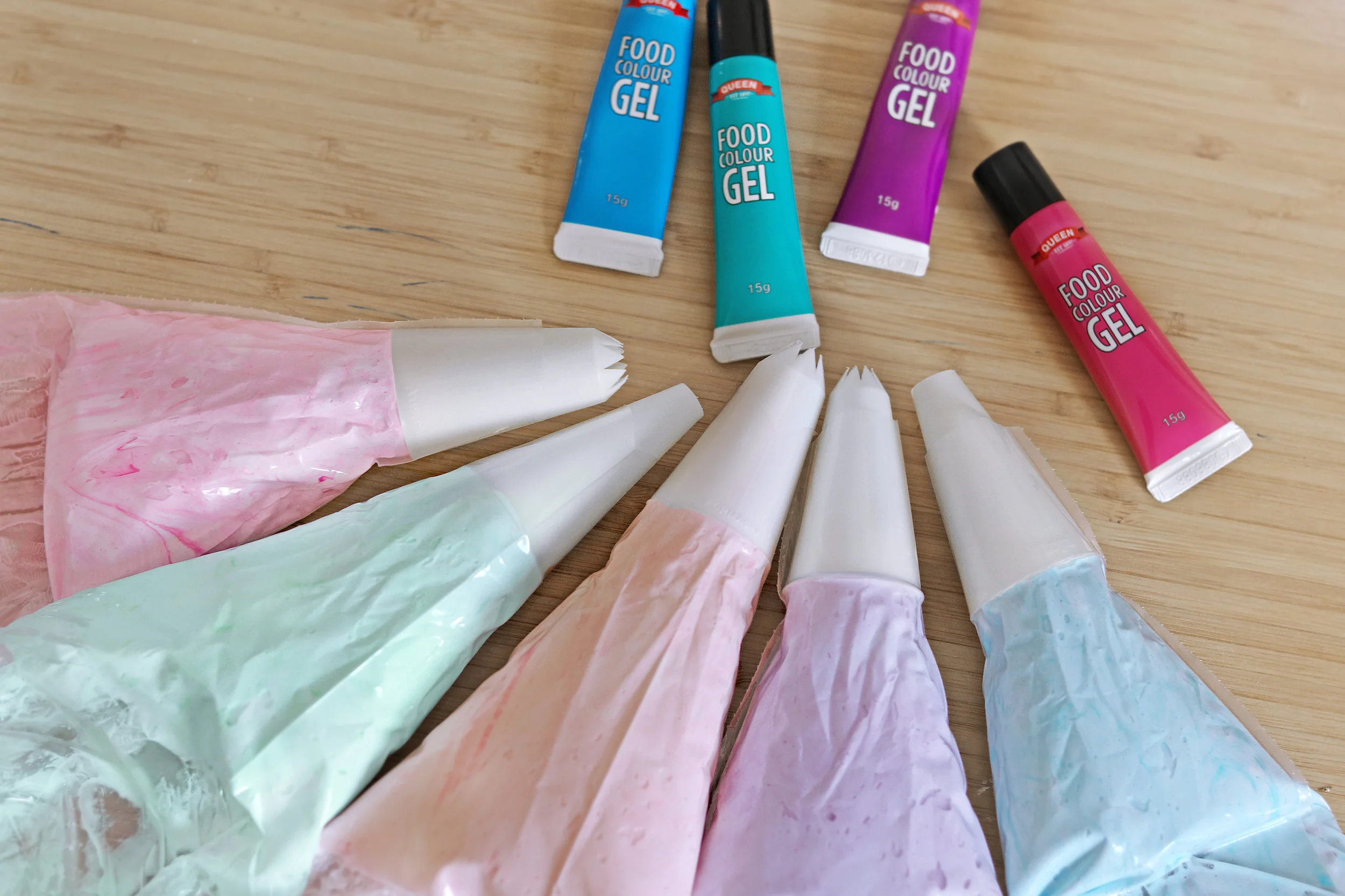 You can divide this mixture into smaller amounts & add some dye/flavouring oils. Fill piping bags w mixture & begin piping meringue on to baking paper. Decorate w sprinkles, salad de fleurs, gold leaf or other decorations as you like. I used paper straws & piped meringue pops for St Valentines’ Day - start this by piping a line of meringue to stick the straw, before decorating the meringue pop.